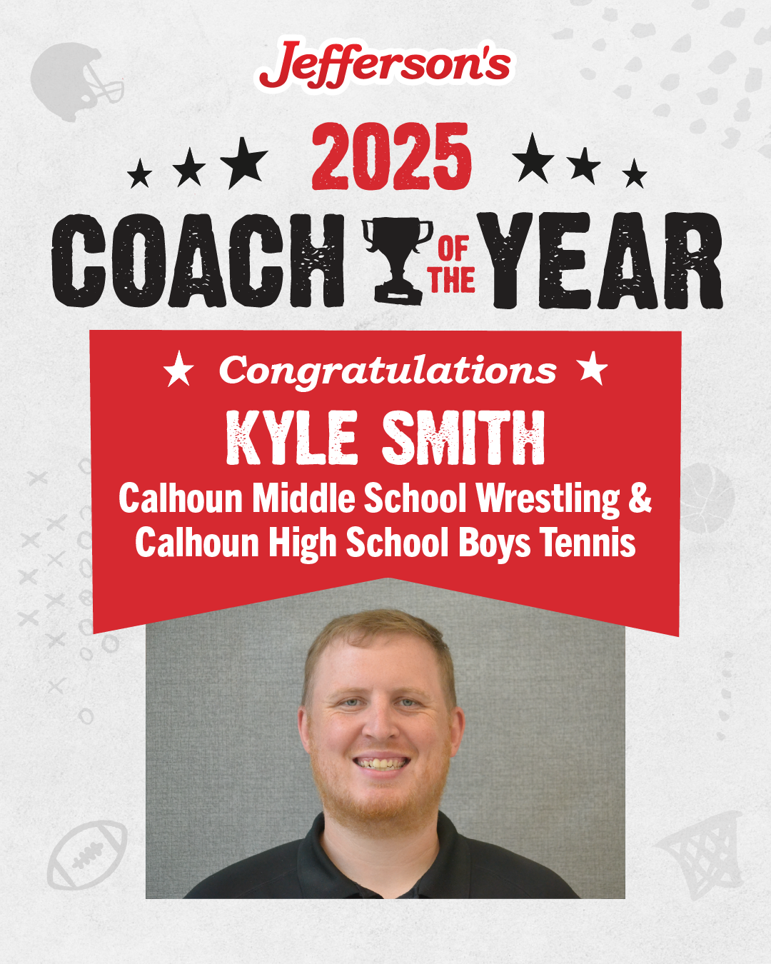We’re proud to recognize Kyle Smith as our 2025 Jefferson’s Calhoun Coach of the Year!