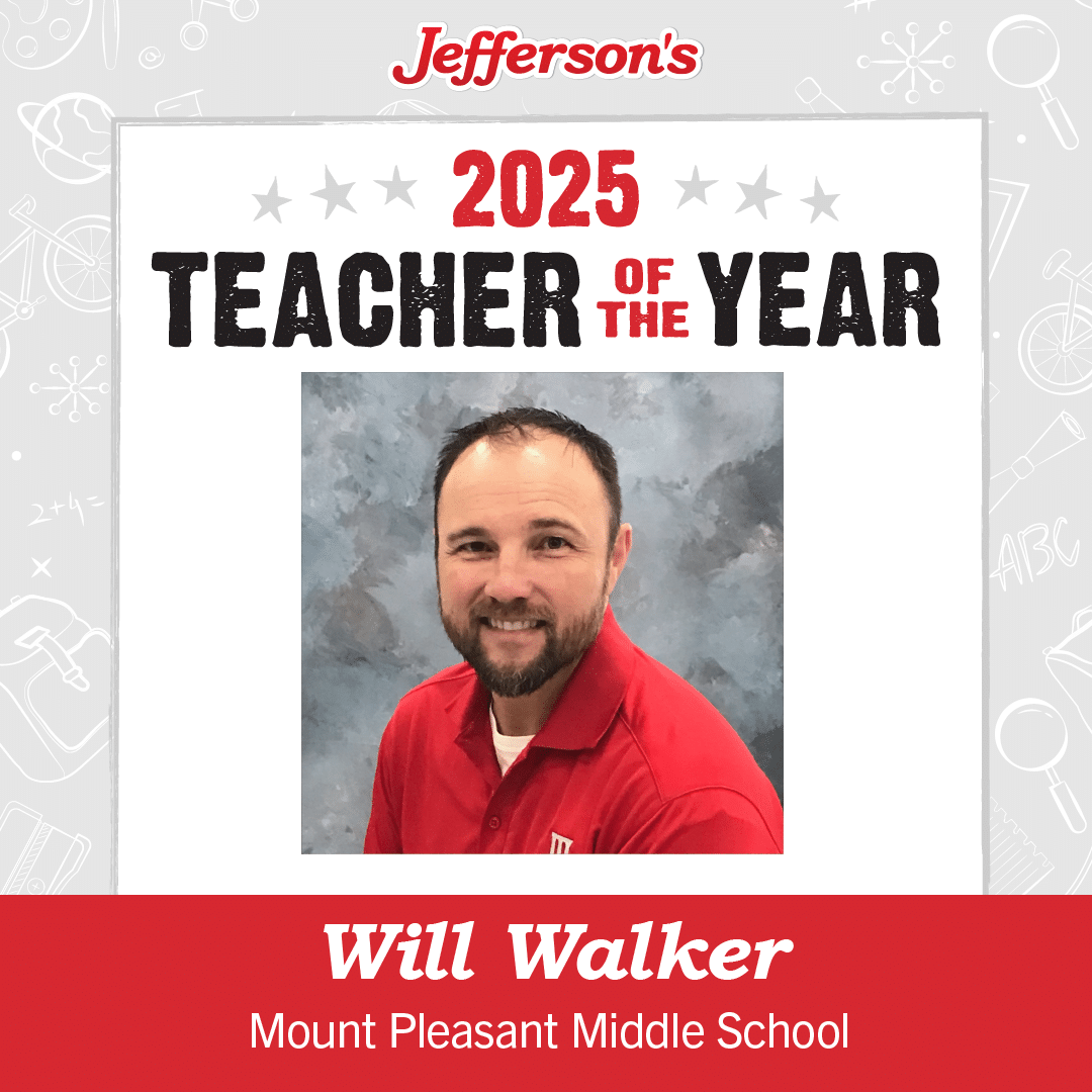 Congratulations to Will Walker, our 2025 Jefferson’s Columbia Teacher of the Year!