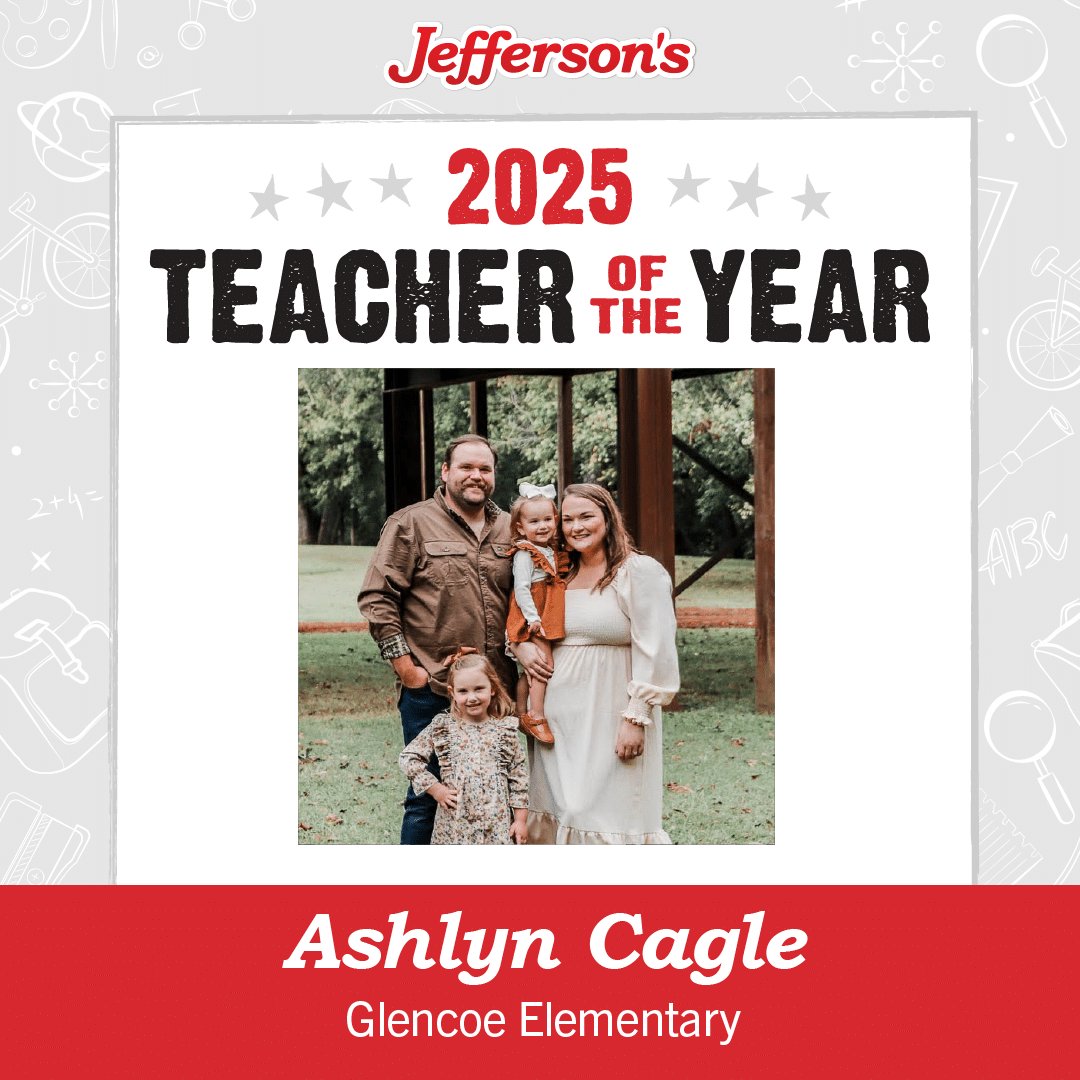 Congratulations to Ashlyn Cagle, our 2025 Jefferson’s Gadsden Teacher of the Year!