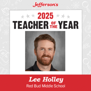 Jefferson’s of Calhoun is pleased to announce that Lee Holley has been named the first-ever Jefferson’s Calhoun Teacher of the Year! Mr. Holley teaches band at Red Bud Middle School, where he has been the band director since 2021. A North Georgia native, Holley has taught band to sixth through eighth grade for 10 years.