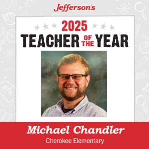 Jefferson’s of Cedartown is pleased to announce that Michael Chandler has been named the first-ever Jefferson’s Cedartown Teacher of the Year! Mr. Chandler teaches at Cherokee Elementary School, and has been teaching for 15 years. Over the course of his career, he has taught pre-kindergarten, fourth grade math and social studies, and early intervention math.