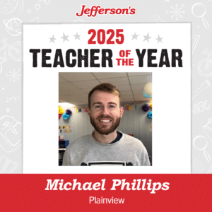 Phillips will receive a $500 gift card to Jefferson’s, and his achievement will be commemorated with a “Jefferson’s Teacher of the Year” plaque for all restaurant patrons to see.