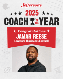 Jefferson’s of Lawrence is pleased to announce that Jamar Reese has been named Jefferson’s Lawrence Coach of the Year. Reese coaches football for the Lawrence Hurricanes and basketball for Run GMC and has been coaching for 17 years.