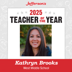 Jefferson’s of Lawrence is pleased to announce that Kathryn Brooks has been named the first-ever Jefferson’s Lawrence Teacher of the Year! Brooks has been a teacher for two years, and currently teaches science at West Middle School.