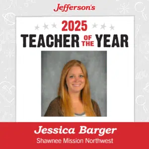 Jefferson’s of Lenexa is pleased to announce that Jessica Barger has been named the first-ever Jefferson’s Lenexa Teacher of the Year! Barger teaches math at Shawnee Mission Northwest High School, currently focusing on IB, AP, and College Now classes. She has been teaching for 21 years.