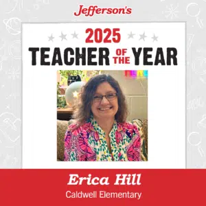 Jefferson’s of Scottsboro is pleased to announce that Erica Hill has been named the first-ever Jefferson’s Scottsboro Teacher of the Year! Mrs. Hill teaches second grade at Caldwell Elementary School, and has been teaching for 18 years.