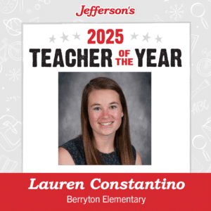“Mrs. Constantino’s nominators spoke of her bigheartedness and her love for her students,” said Jefferson’s President Brandon Graham. “Her nominators shared how much care and originality she puts into her classes, as well as her interest in her students as people. We’re honored to recognize Lauren Constantino for her dedication and her contribution to the Topeka community.”