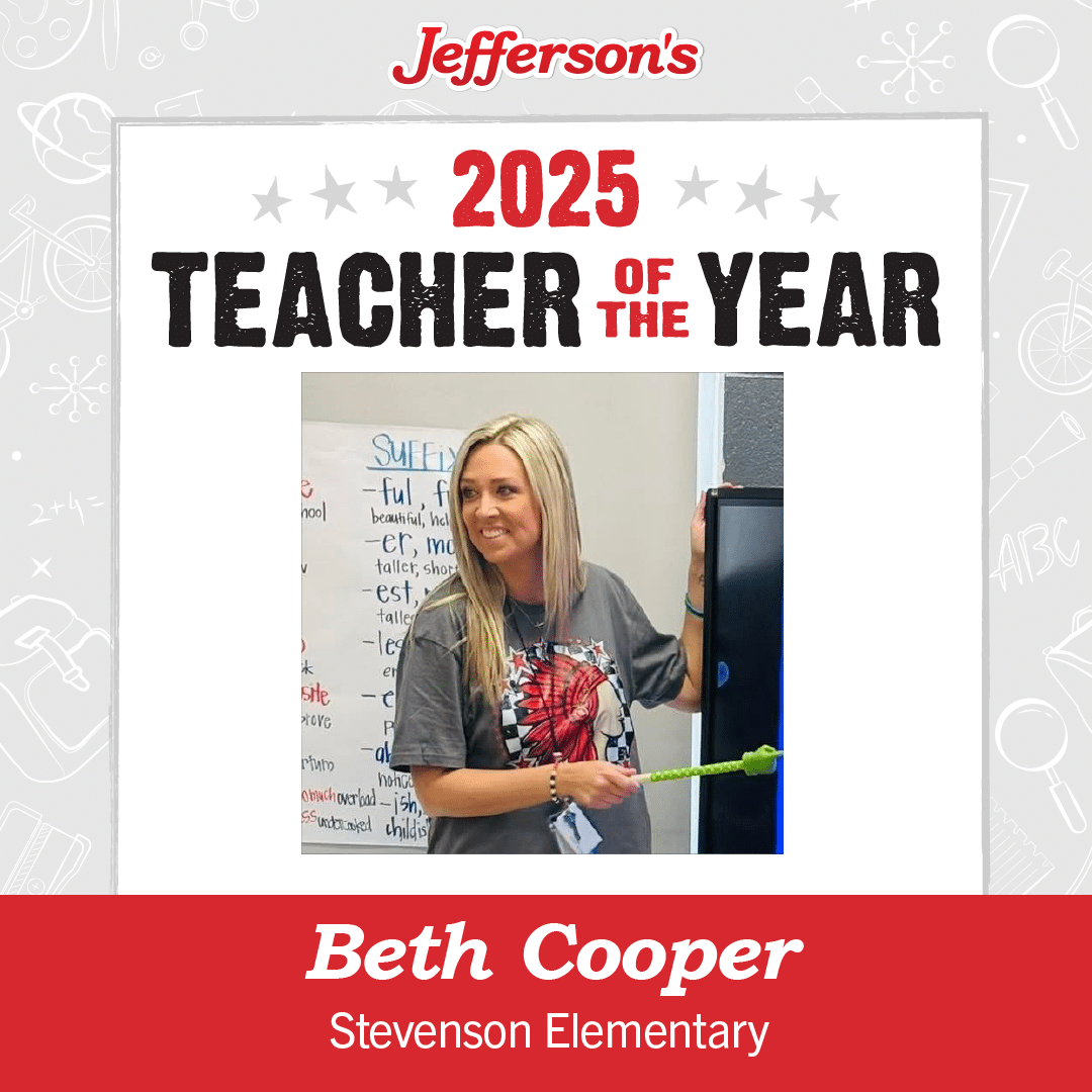 Congratulations to Beth Cooper, our 2025 Jefferson’s Kimball Teacher of the Year!