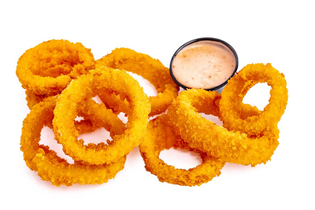 Breaded onion rings served with Jefferson’s special sauce. (1030 cal)