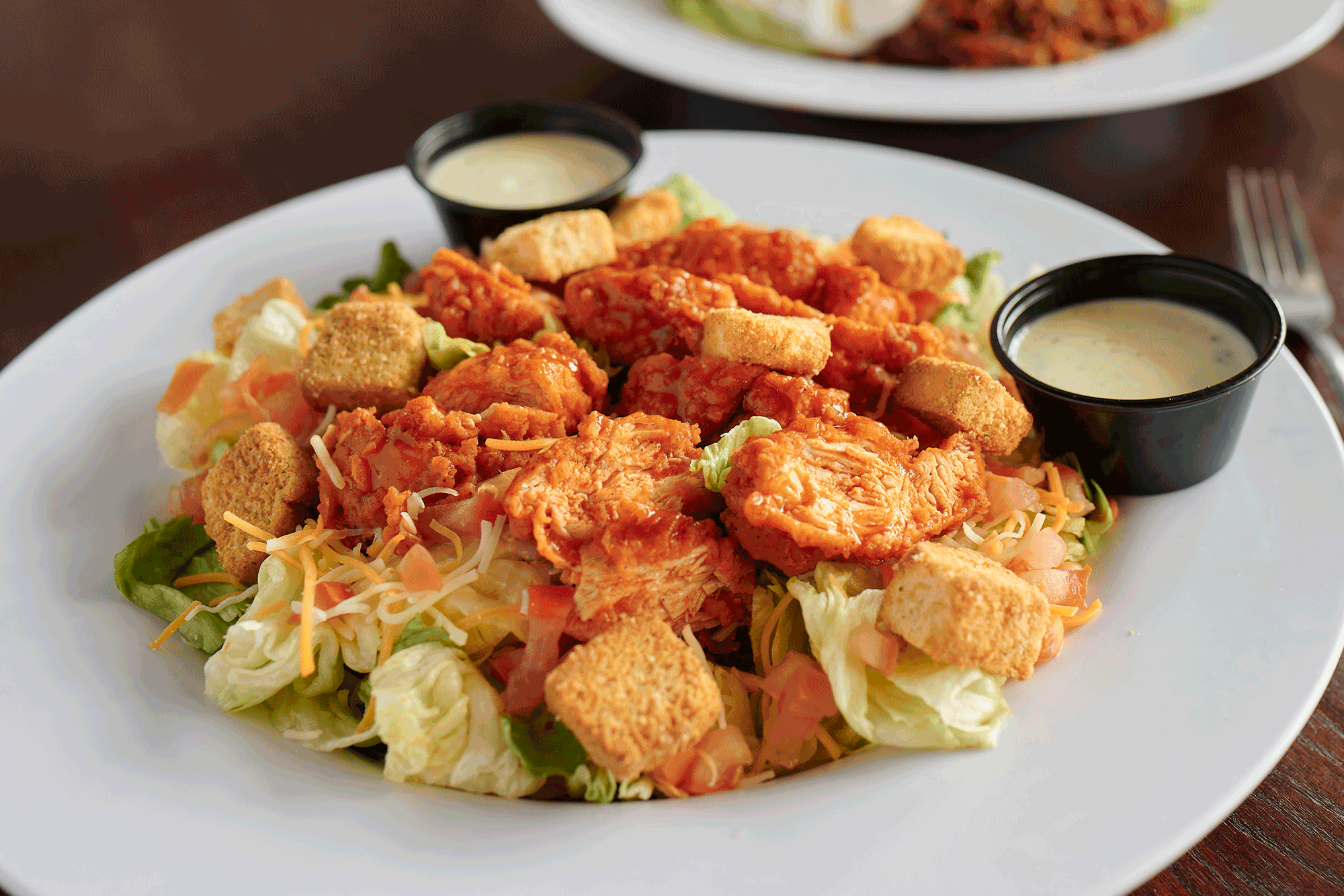 Grilled or hand-breaded chicken tossed in any Signature Sauce served on our house-made tortilla chips with queso, tomatoes, onions, shredded cheese, jalapeños, salsa & sour cream (1420 / 2120 cal)