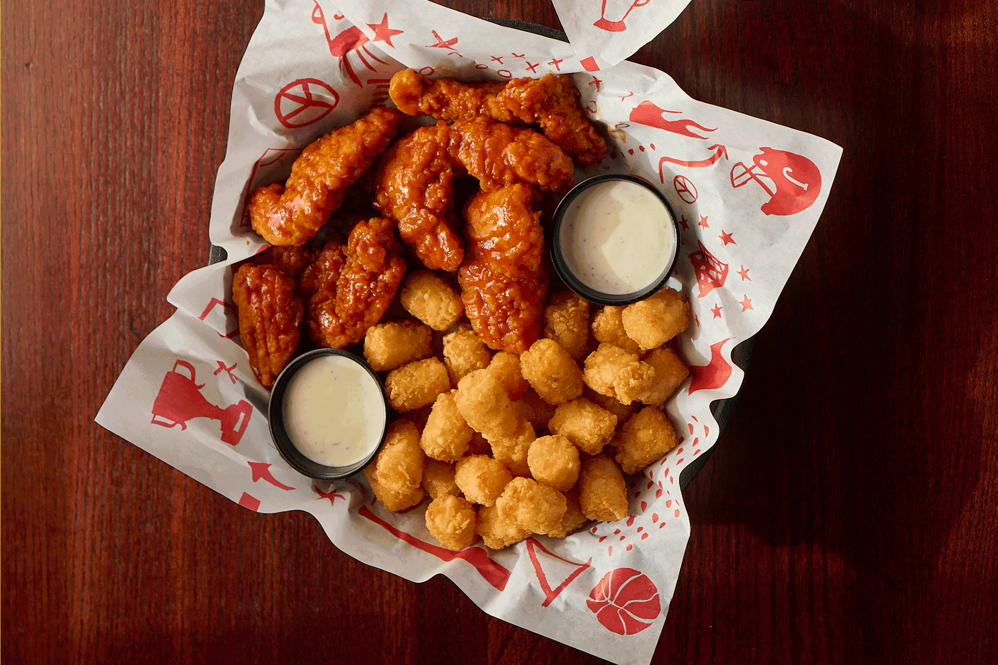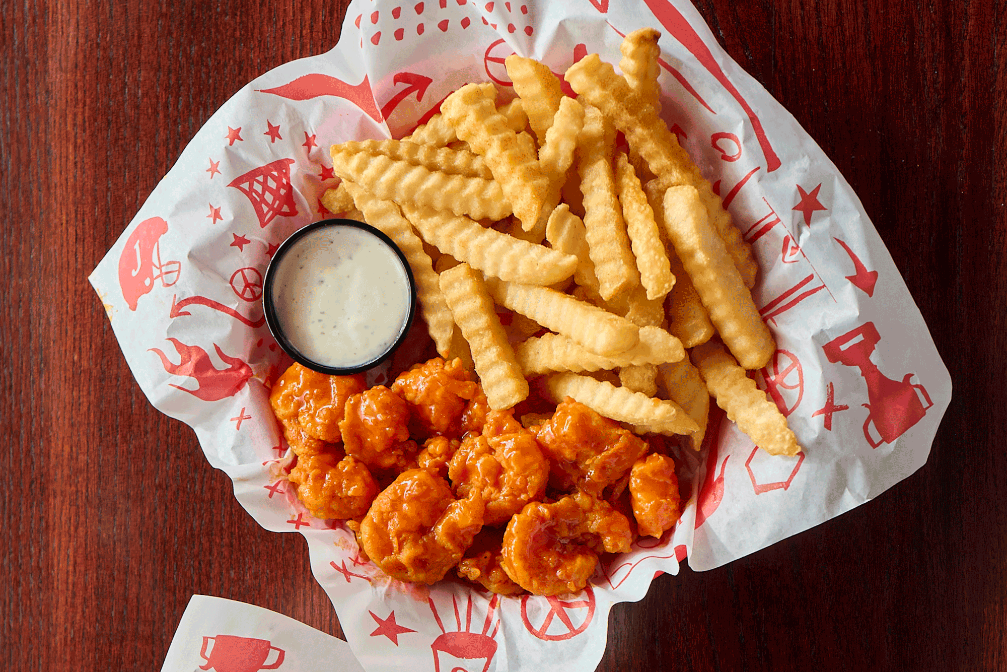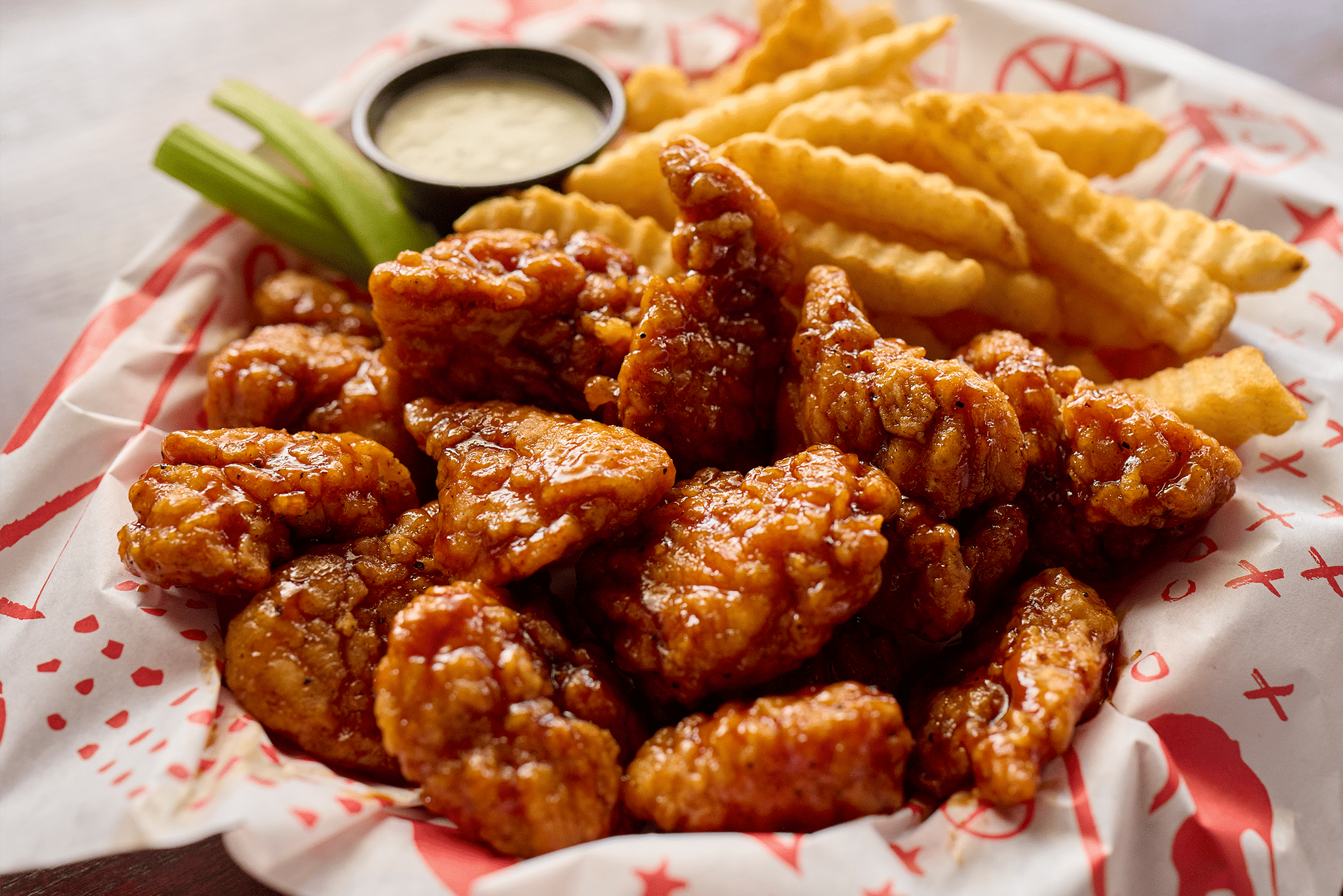 4 boneless wings tossed in any of our Signature Sauces served with ranch. (470-840 cal)