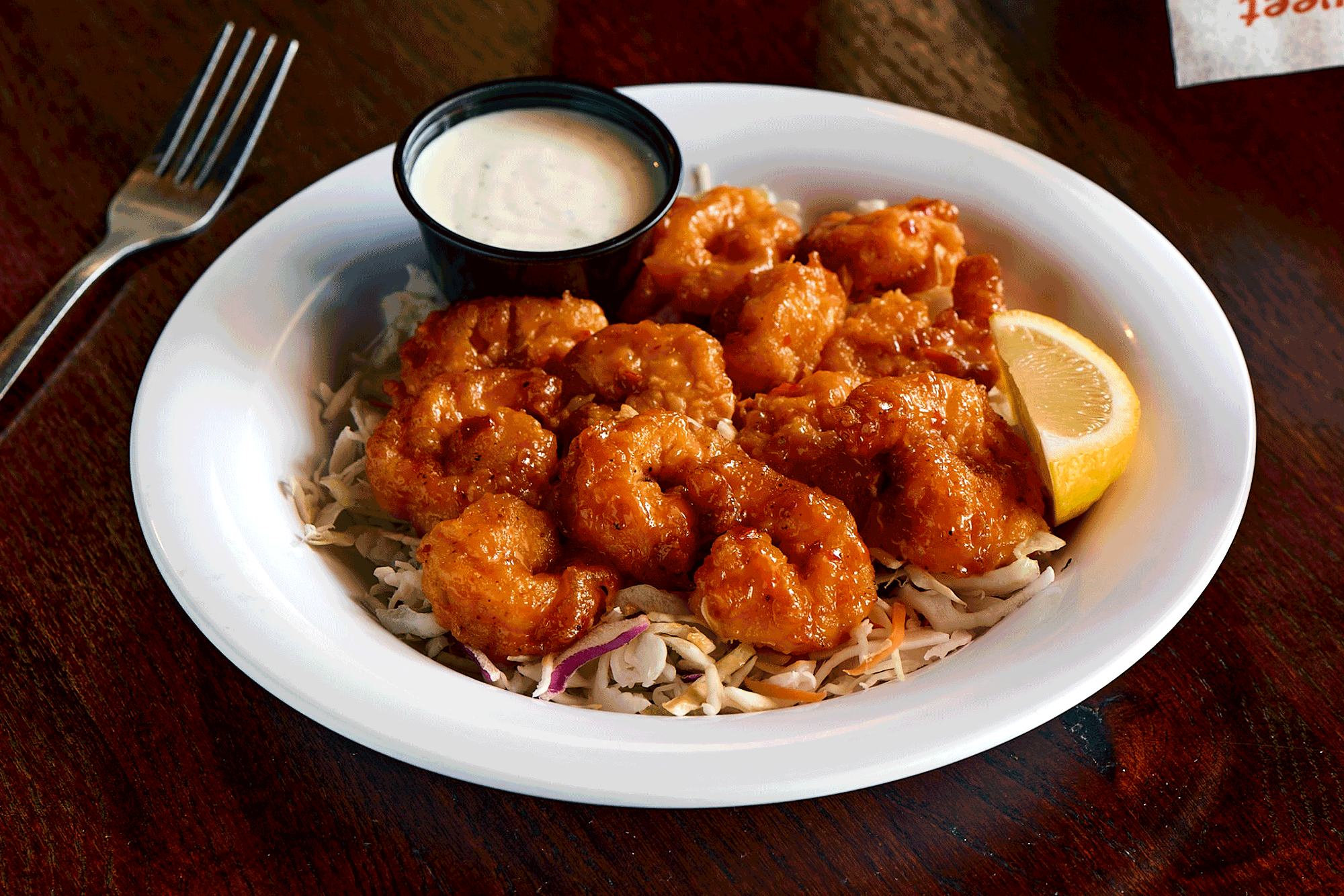 Hand-breaded shrimp tossed in our Firecracker Signature Sauce topped with chives, served on a bed of cabbage. (760 cal)