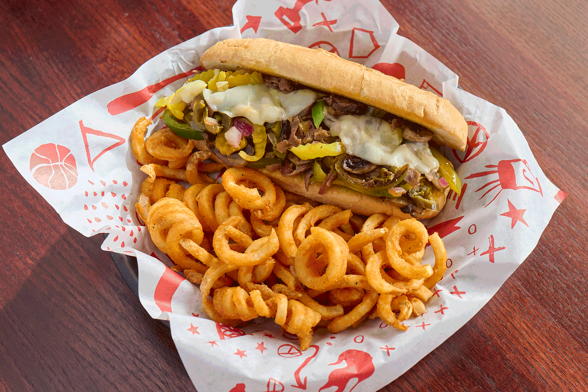 Grilled chicken covered in onions, peppers, mushrooms, jalapenos & banana peppers with Pepper Jack drizzled with Mild sauce and our house-made ranch on a hoagie bun (830 cal)