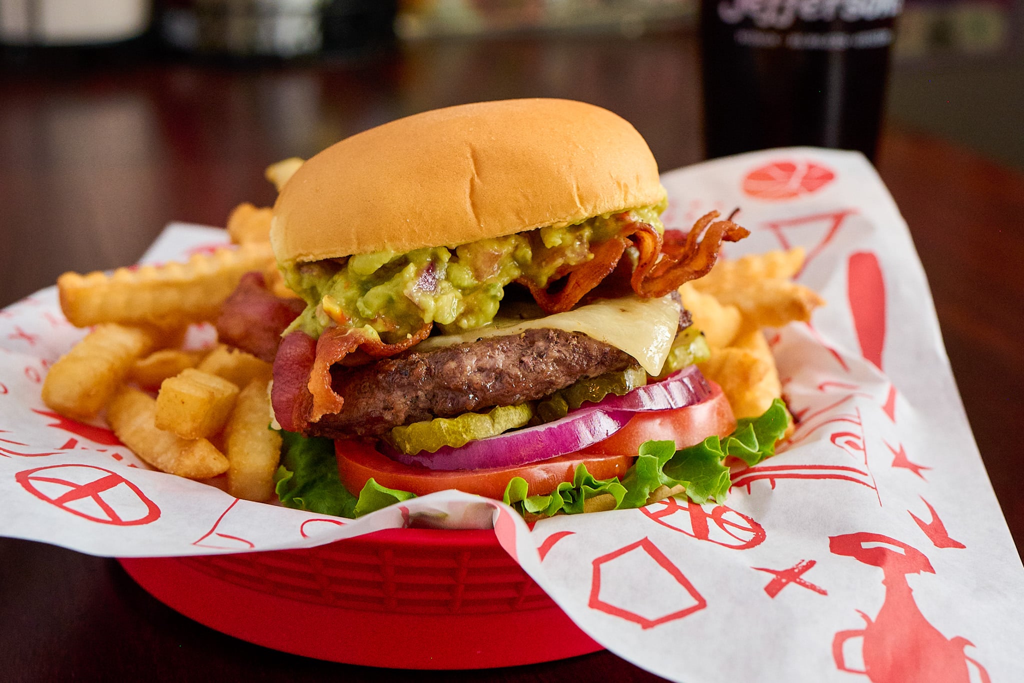Pepper Jack cheese, smoked bacon & guacamole (820 cal)