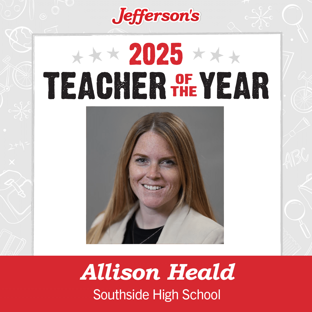 Congratulations to Allison Heald, our 2025 Jefferson’s Rainbow City Teacher of the Year!