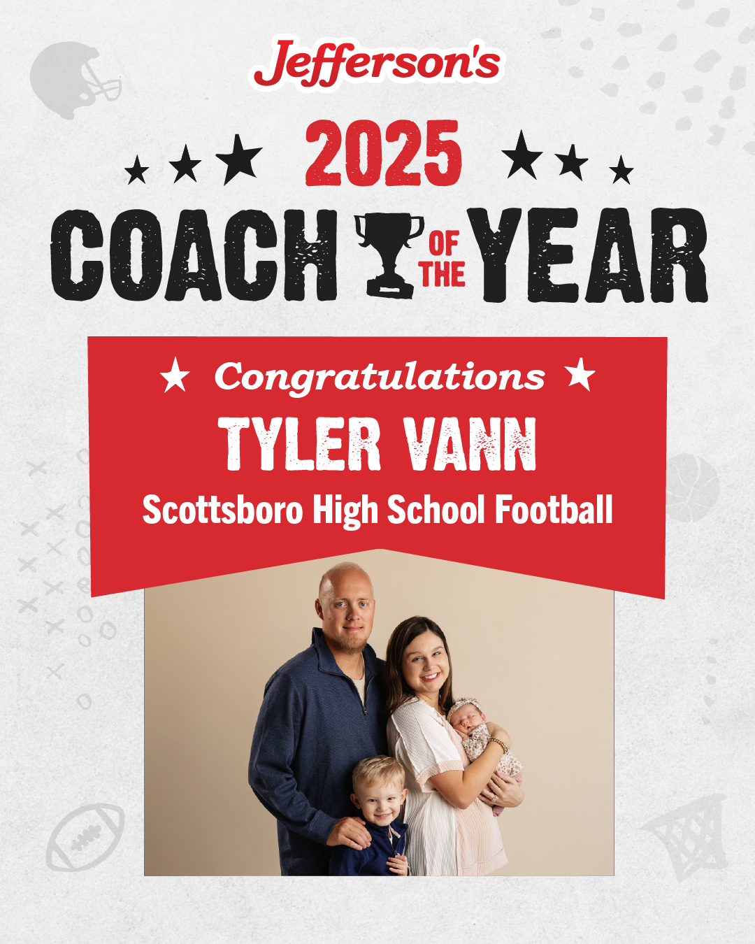 We’re proud to recognize Tyler Vann as our 2025 Jefferson’s Scottsboro Coach of the Year!