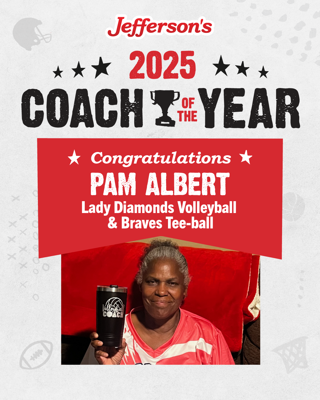 We’re proud to recognize Pam Albert as our 2025 Jefferson’s Summerville Coach of the Year!